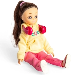 Bábika meria 19 cm, má hnedé nylonové vlasy a hnedé oči. V balení nájdete aj štýlové doplnky, vďaka ktorým si deti môžu ľahko vymýšľať príbehy z prostredia programovania a hier. Lottie je skvelou spoločníčkou pre prvé krôčiky do sveta kódu aj ako darček pre malých tvorcov.
