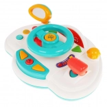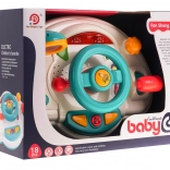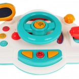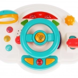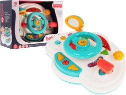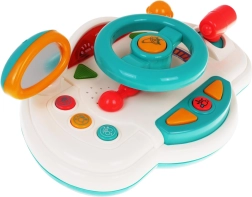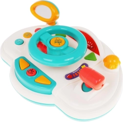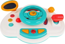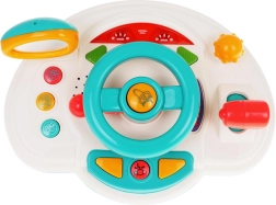 Objavte hravú jazdu s interaktívnou detskou „palubnou doskou“, ktorá napodobňuje skutočné auto. Deti môžu otáčať volantom, použiť klaksón, prepínať smerovky a meniť „rýchlosti“ pomocou radiacej páky. Podsvietené prvky a melódie udržia pozornosť a podporia zmyslový rozvoj.