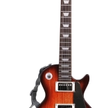 Hnedé prevedenie s tvarom elektrickej gitary, popruhom a ovládacími prvkami podporuje autentický zážitok z hrania.