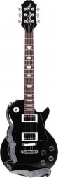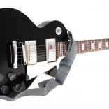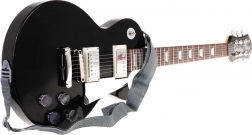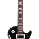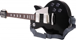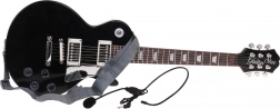 - čierna elektrická gitara, náhlavný mikrofón, popruh