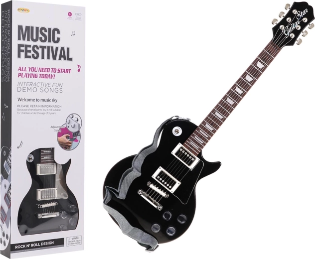 Zábavná detská elektrická gitara so slúchadlovým mikrofónom pre malých hudobníkov od 3 rokov. Ponúka reguláciu hlasitosti, výber rytmov a hotové melódie, realistický vzhľad a nastaviteľný popruh pre pohodlné hranie. Zábava, ktorá rozvíja rytmus a jemnú motoriku.