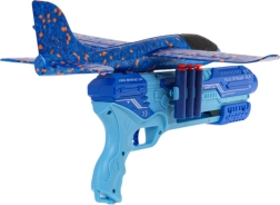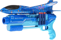 Modrá pištoľ funguje aj ako vystreľovač klzáka – poletí ďaleko a zaistí veľa pohybu na záhrade aj ihrisku.