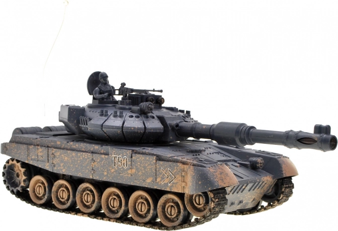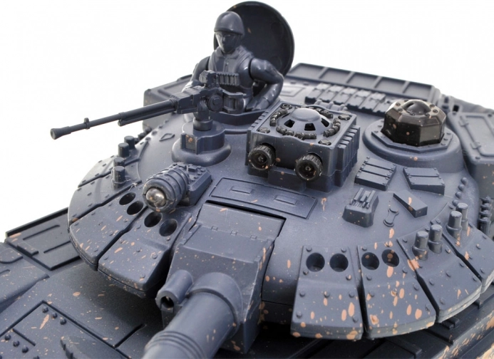 Užite si realistickú vojenskú akciu s diaľkovo ovládaným tankom T90, ktorý strieľa, jazdí a svieti. Tento model je vytvorený v elegantnom grafitovom maskovaní a jeho otočná veža sa môže otáčať o 180 stupňov v oboch smeroch, čo zaručuje rozsah streľby 360 stupňov. Tank je vybavený efektnými svetelnými prvkami, ktoré vyzerajú úžasne v tmavých priestoroch. Navyše má otvorené veko veže, kam môžete umiestniť figúrku tankistu s guľometom, ktorá je súčasťou balenia.