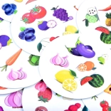 Zábavná postrehová hra s okrúhlymi kartami plnými farebných ilustrácií ovocia a zeleniny. Cieľom je čo najrýchlejšie nájsť zhodný symbol medzi kartami a pomenovať ho nahlas. Hra trénuje rýchle reakcie, postreh a sústredenie, skvele sa hodí na party, výlety aj rodinné večery. V balení nájdete 30 kariet a čaká vás viac napínavých mini hier pre 2–5 hráčov od 4 rokov.