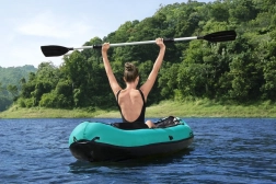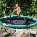 - Kompletný set: kajak, hliníkové pádlo 218 cm, ručná pumpa, opravná záplata.