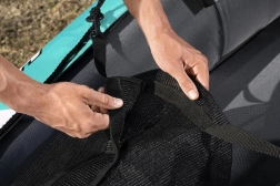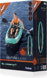 Praktické detaily ako bezpečnostná linka po celom obvode, úložný priestor a vyberateľná taška uľahčia organizáciu vybavenia. Rýchlu prípravu na vodu zaistí priložená ručná pumpa, po doplávaní kajak ľahko vyfúknete a kompaktne uložíte.