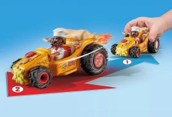 Vozidlo má miesto pre figúrku PLAYMOBIL a vďaka praktickému pull-back pohonu zaručuje okamžitú zábavu bez batérií. Veselé karosérie možno dozdobiť rôznymi doplnkami, takže si deti môžu svoj pretekársky stroj prispôsobiť presne podľa seba.