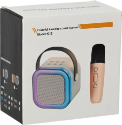Karaoke set mikrofón + prenosný reproduktor BLUETOOTH USB LED béžový