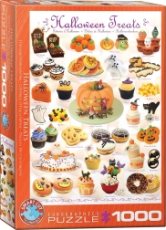 Objavte zábavnú výzvu s puzzle, ktoré zobrazuje pestrý výber halloweenskych dobrôt s názvami v angličtine. Vďaka špeciálnej raznici majú dieliky neobvyklé tvary a nesledujú klasickú mriežku, čo zvyšuje obtiažnosť aj zábavu pri skladaní. S rozmermi cca 48,89 × 67,63 cm je to ideálna voľba pre fanúšikov kvalitných puzzle EUROGRAPHICS.
