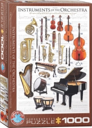 Objavte fascinujúci svet hudby s puzzle EUROGRAPHICS s 1000 dielikmi, ktoré zobrazuje dychové, sláčikové, klávesové, samozvučné aj membranofónne nástroje na pozadí štýlového notového zápisu. Vďaka originálnym, nepravidelným tvarom dielikov a zvýšenej náročnosti si užijete dlhé hodiny zábavy aj výzvy.