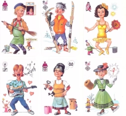 Hracie karty pre obľúbenú hru Čierny Peter s veselými obrázkami, ideálne pre zábavu starších detí a ich priateľov.