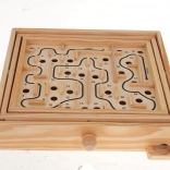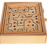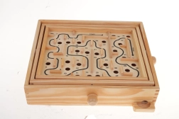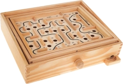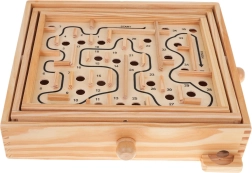 Ponorte sa do sveta zábavy s drevenou hrou Labyrint, ktorá ponúka jedinečný pôžitok z hry a zároveň rozvíja zručnosti. Táto hra je navrhnutá tak, aby stimulovala koncentráciu a koordináciu medzi rukou a okom. Pomocou otočných gombíkov na bokoch môžete ľahko nakláňať hernú dosku a navigovať guľôčku.