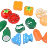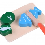 Táto drevená sada obsahuje pestrý výber ovocia, zeleniny a ryby, všetko vybavené magnetmi pre ľahké rozdelenie na časti. Každý kus je vyrobený z kvalitného dreva a maľovaný netoxickými farbami, ktoré zaisťujú bezpečnosť pre najmenších.