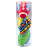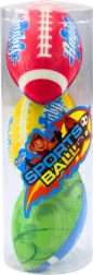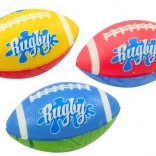 Zábavná súprava troch penových ragbyových lôpt v rôznych farbách na bezpečné hry na záhrade, ihrisku aj na pláži. Mäkký materiál je šetrný k deťom a ponúka ľahkú a bezpečnú manipuláciu, jasné farby pre lepšiu viditeľnosť a univerzálne využitie pre aktívny pohyb.