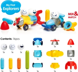 Sada SmartMax Moji prví dobrodruhovia prináša rýchlu a radostnú cestu do sveta konštrukčnej hry. Diely v jasných farbách sa vďaka silným magnetom bezpečne a jednoducho pripájajú, takže si deti užijú množstvo úspešných staviteľských pokusov bez frustrácie.