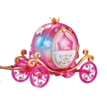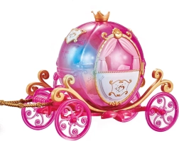 Tento elegantný kočiar, zdobený zlatými detailmi a ružovými kolieskami, je snom každej malej princeznej a umožňuje oslňujúcu hru.