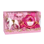 Nechajte svoje ratolesti ponoriť sa do sveta fantázie s týmto nádherným toy setom, ktorý obsahuje bieleho koňa s dlhou hrivou, pripraveného na česanie pomocou ružových hrebeňov a kefiek. Kočiar s rozprávkovým dizajnom ponúka zábavu so zvukmi a svetlami, ideálny pre kreatívne hry.