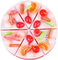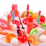 Jednotlivé časti torty sú spojené suchým zipsom, čo umožňuje deťom zostaviť tortu podľa vlastných predstáv.