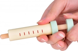 - Bezpečná drevená injekčná striekačka pre podanie injekcie.