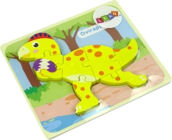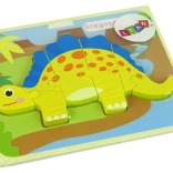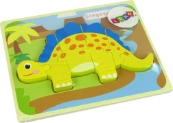 Zábavné drevené puzzle s motívom dinosaurov pre deti od 3 rokov. Diely z kvalitného dreva majú hrúbku 5 mm pre ľahké uchopenie, jasné farby a jednoduché tvary podporujú jemnú motoriku, koncentráciu a pamäť. Na výber stegosaurus alebo oviraptor. Bezpečná hračka podľa EN71.