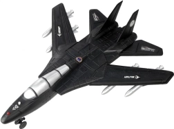 Toto detailne spracované stíhacie lietadlo s podvozkom, raketami a kokpitom s priehľadnými oknami nadchne všetkých malých fanúšikov akčných misií. Po stlačení tlačidla sa aktivujú realistické zvuky letu a streľby sprevádzané červeným svetlom, ktoré umocní atmosféru každej leteckej operácie. Robustná konštrukcia z atestovaného plastu a bezpečné spracovanie sú ideálne na každodenné hranie.