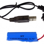 Súčasťou je Li-ion batéria 3,7 V 500 mAh v traktore a USB kábel pre ľahké nabíjanie. Diaľkový ovládač vyžaduje 2× AA (nie sú súčasťou).