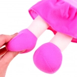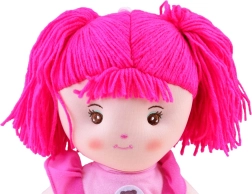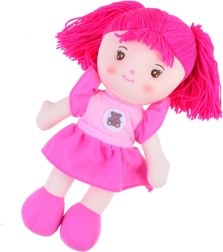 Táto klasická textilná bábika poteší každé dieťa. Je ušitá z príjemného, mäkkého materiálu, má vyšívané detaily tváre a zladené ružové šaty aj topánočky. Je ľahká, krásne sa drží v rúčkach a priamo nabáda k objatiu.