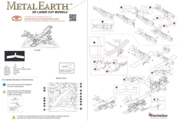 Jednotlivé diely vyberte z kovových plátkov, v prípade potreby použite malé štípacie nožnice (nie sú súčasťou). Diely sa spájajú pomocou zámkov tvorených úchytom (zobáčikom) a otvorom. Zobáčik ohnite pomocou malých tenkých klieští (nie sú súčasťou) a postupne spojte všetky zámky, až vznikne veľmi realistické majstrovské dielko!