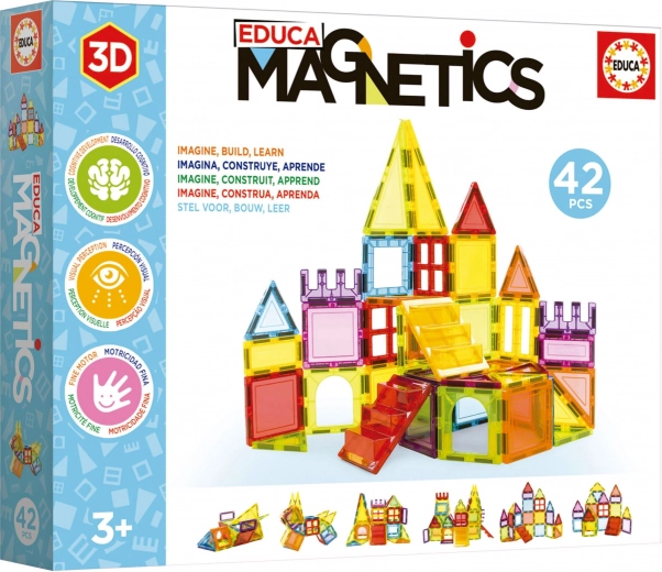 Predstav si – postav – uč sa! Kreatívna magnetická stavebnica Magnetics od španielskeho výrobcu EDUCA umožňuje zostavovať veľké množstvo trojrozmerných objektov pomocou dvojrozmerných plastových mnohouholníkov.