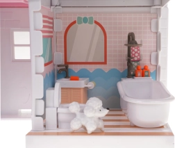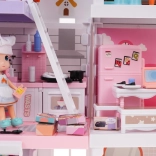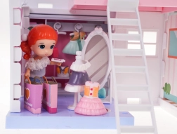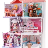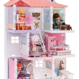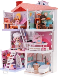 Domček pre bábiky je zázrak plný farieb a detailov, ktoré očaria každé dieťa. Na prízemí nájdete šatník a kúpeľňu, zatiaľ čo na prvom a druhom poschodí čakajú kuchyňa, obývacia izba a spálňa, všetko vybavené štýlovým nábytkom a doplnkami. Bohato zariadené interiéry podnecujú deti k rozvíjaniu fantázie a kreativity.