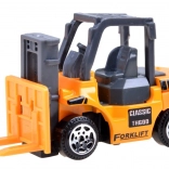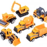 Šesť detailne spracovaných vozidiel s kovovou konštrukciou a funkčnými prvkami pre autentickú hru na stavbe.