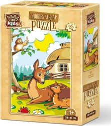 Roztomilé drevené puzzle so srnčou maminkou poteší malých milovníkov prírody. Dieliky sú vyrazené z pružnej africkej drevenej preglejky a po zostavení vytvoria obrázok s rozmerom cca 16 × 24 cm. Ideálne na rozvoj jemnej motoriky, trpezlivosti a vizuálnej predstavivosti. 25 dielikov, odolná drevená preglejka, krásny prírodný motív.