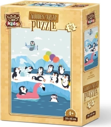Drevené puzzle s motívom roztomilých tučniakov obsahuje 25 kvalitne vyrobených dielikov z afrického dreva, ideálne na zábavné skladanie.