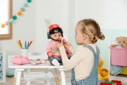Chráni pred zranením a zároveň dodáva bábike BABY born štýlovú jazdu vďaka pohyblivému hľadíku a hravým dekoráciám.