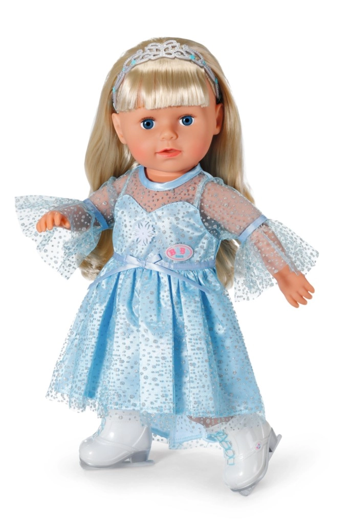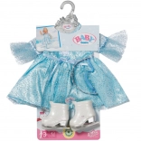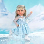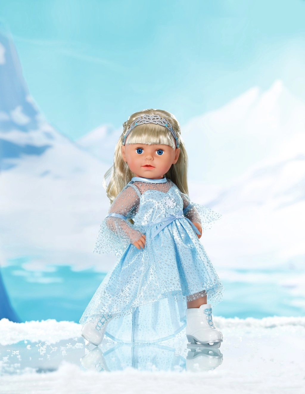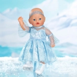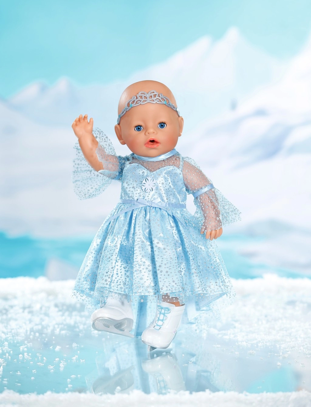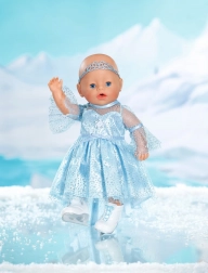 Elegantná súprava pre bábiky BABY born 43 cm prináša kúzlo zimného kráľovstva do každodennej hry. Ľahučké trblietavé šaty s jemným prehozom ľahko oblečiete a vďaka diadému bude účes držať aj pri každej piruete. Biele topánky v štýle korčúľ podoprú fantáziu a detské príbehy o krasokorčuľovaní.