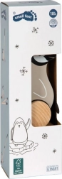 Pri pohybe tučniak vydáva jemné klopkajúce a kolísavé zvuky, ktoré deti prirodzene motivujú k ďalším krokom. Pogumované kolieska sú šetrné k podlahe a zabezpečujú tichý, plynulý pohyb. Kvalitné FSC drevo je zárukou bezpečnej a zodpovednej voľby.