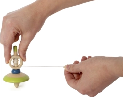 Mechanizmus so šnúrkou umožňuje plynulé a rýchle roztočenie. Stačí jemne pridržať vĺčik, potiahnuť a sledovať farebný tanec.