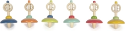 Masívne drevo v kombinácii s pestrými farbami je príjemné do ruky, odolné a bezpečné na každodenné hranie.