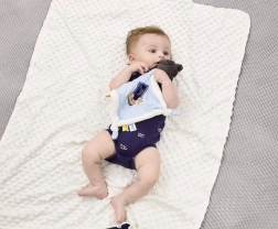 Hebučký materiál príjemný k detskej pokožke upokojuje a navodzuje pocit bezpečia už od narodenia.
