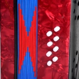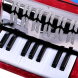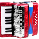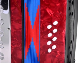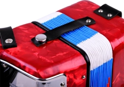 Tento veľký detský akordeón vyniká realistickým spracovaním a jednoduchým ovládaním. Zvuk sa vytvára rovnako ako pri skutočnom akordeóne – roztahovaním a stláčaním mechov. Vďaka pohodlnému úchytu na ruku a koženým ramenným popruhom sa deťom dobre drží aj hrá. Spona mechov chráni nástroj pri prenášaní a skladovaní.