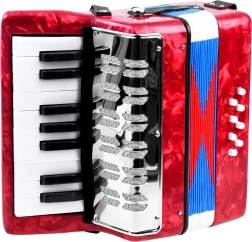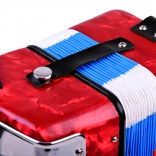 Objavte radosť z hudby s detským akordeónom Harmonia – realistický vzhľad, pohodlné držanie a čistý, príjemný zvuk. Skutočné klávesy a basové gombíky, pevné popruhy a bezpečnostná spona mechov z neho robia ideálny nástroj na prvé hudobné krôčiky.