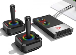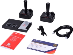 Súčasťou balenia sú 2 bezdrôtové ovládače 2,4 GHz s otočnými kolieskami pre autentické ovládanie hier ako Breakout či Warlords.