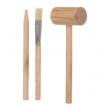 Trojdielna sada drevených nástrojov vrátane kladivka, špicatého klacíka a štetca je ideálna na jemné vykopávanie a upratovanie náleziska.