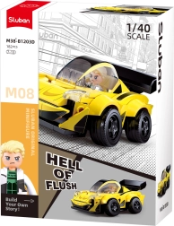 Stavebnica obsahuje model žltého športového vozu s dĺžkou 12,2 cm pre zábavnú pretekársku hru.