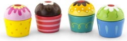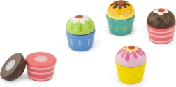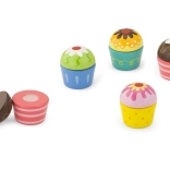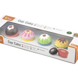 Popustite uzdu detskej fantázii a nechajte malého cukrára skladať vlastné sladké kombinácie. Každá tortička sa skladá z dvoch častí spojených suchým zipsom – polevu a korpus možno ľahko vymieňať znova a znova. Ideálny doplnok do detskej kuchynky aj na hru na obchod alebo kaviareň.