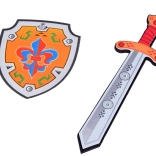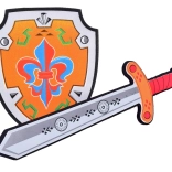 Štít zdobí ikonická ľalia, ktorá podnecuje predstavivosť a pozýva k rytierskym výpravám. Set je skvelým doplnkom k rytierskemu kostýmu na karneval, narodeninovú oslavu alebo školské predstavenie. Praktické rozmery (štít cca 19 × 23 cm, meč cca 43 × 12 cm) sedia do detských rúk a uľahčujú manipuláciu.