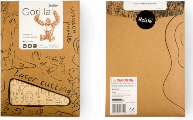 Objavte radosť z tvorenia s dreveným 3D puzzle gorila od RoboTime. Model je navrhnutý na pohodlné zostavenie aj pre začiatočníkov a po dokončení sa stane štýlovou dekoráciou do detskej izby, pracovne alebo obývačky. Prírodný materiál a precízne výrezy podčiarkujú realistický vzhľad aj kvalitné spracovanie.