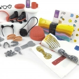 - Zostaviteľná bábika, látka s predtlačenými strihmi 61 × 32 cm, módne doplnky, bavlnky na vlasy, dierovač odevov, príslušenstvo, obrázkový návod