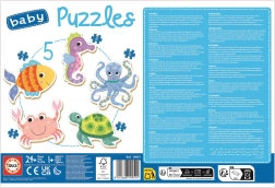 Baby puzzle EDUCA Vodné zvieratá 5v1 sú navrhnuté špeciálne pre najmenších. Podporujú psychomotorický vývoj, koordináciu ruka–oko aj trpezlivosť a logické uvažovanie. Zostavený obrázok má približne 15 × 15 cm, ideálna veľkosť pre malé ruky aj prvé úspechy.