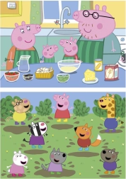 Táto sada obsahuje 2 drevené puzzle s rovnakým počtom dielikov a zhodným rozmerom, ideálne na tréning jemnej motoriky, sústredenia a logického myslenia. Obľúbené postavičky z rozprávky Prasiatko Peppa deti okamžite zaujmú a motivujú ich k skladaniu.
